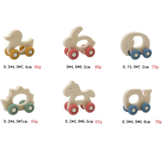 Wooden Grip Animal With Silicone Wheels Pack of 6